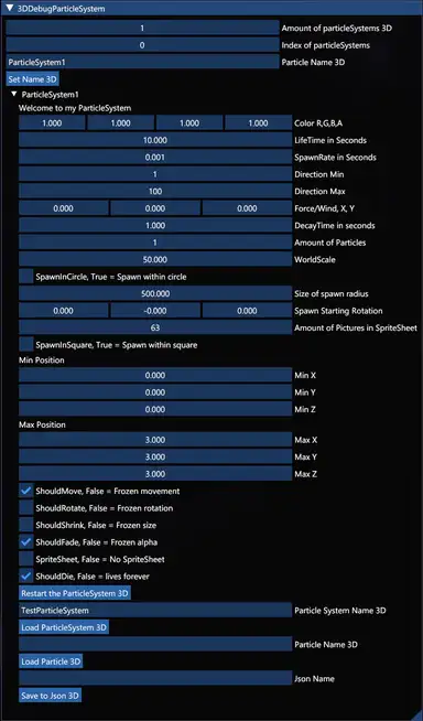 The particle system holds all the particles and all of the debug data connected to the editor.
